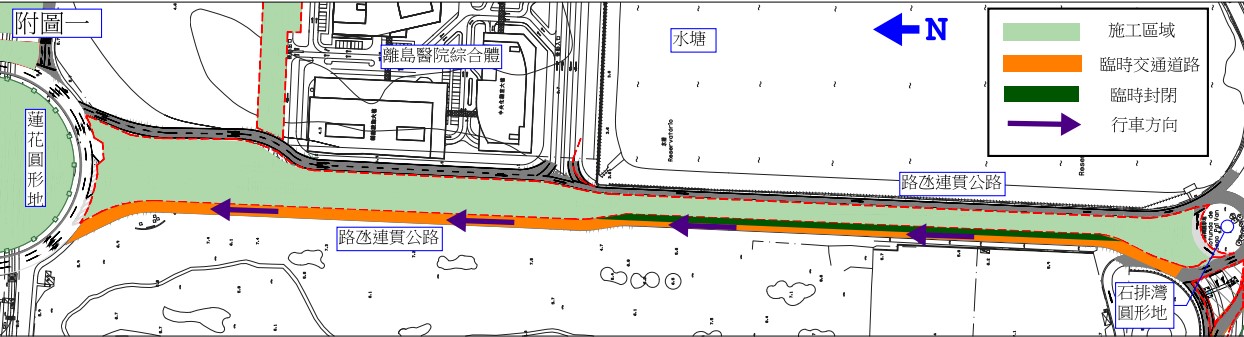 於2023年6月29日至10月31日期間,南行線及北行線均實施單線行車。而在圍封的施工範圍內將適當設置備用應急通道以配合緊急情況時使用(詳見附圖二)。