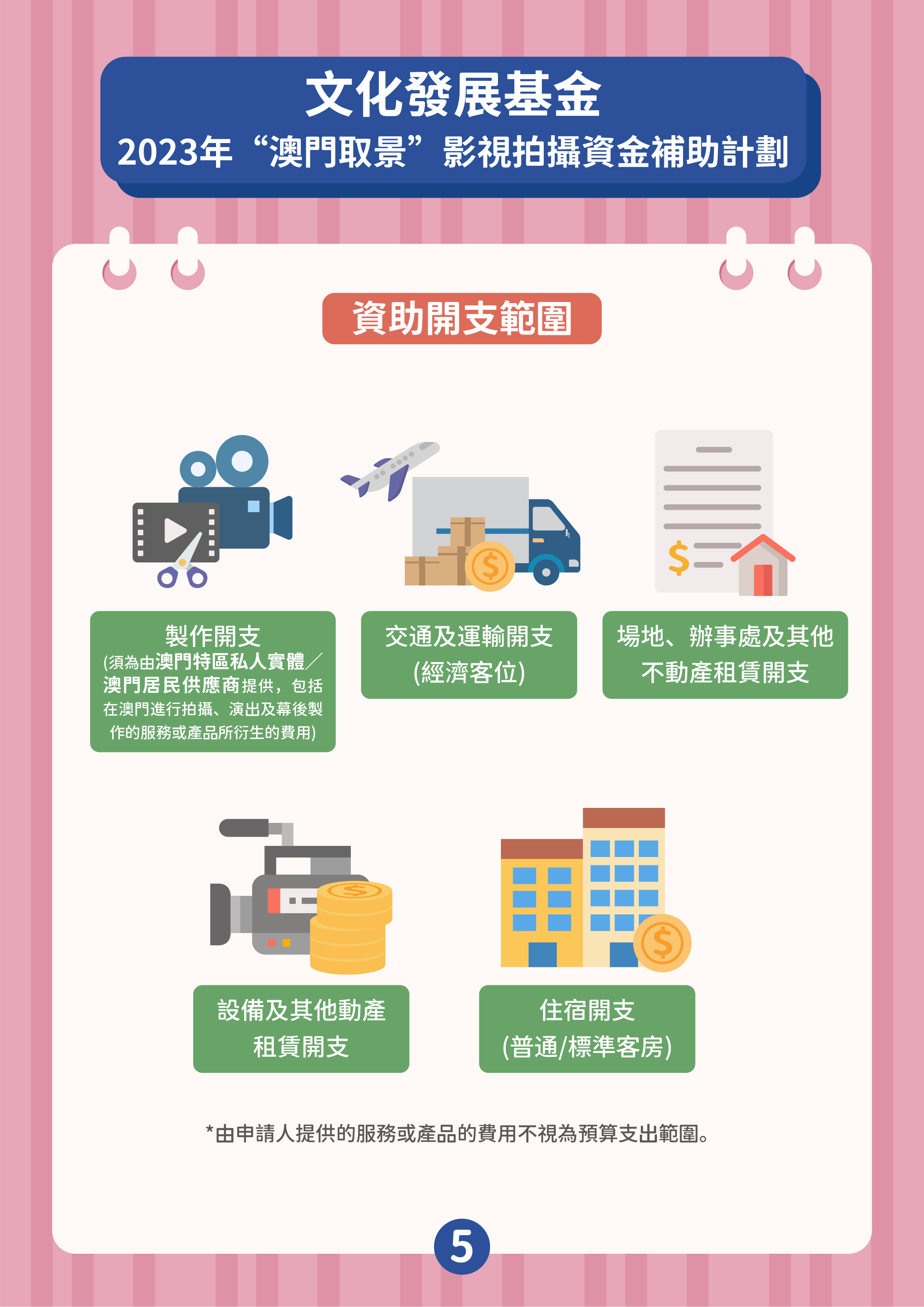 兩項資助計劃由6月21日開始接受申請,最後接受申請限期為2023年12月29日,資助名額不限,直至相關資助計劃預算使用完畢為止,屆時申請期將同時提早結束,基金將在網站對外公佈有關訊息。兩項計劃的獲資助作品類型包括電視劇、電影、紀錄片、綜藝節目、音樂錄像及廣告片,但不包括動畫作品。