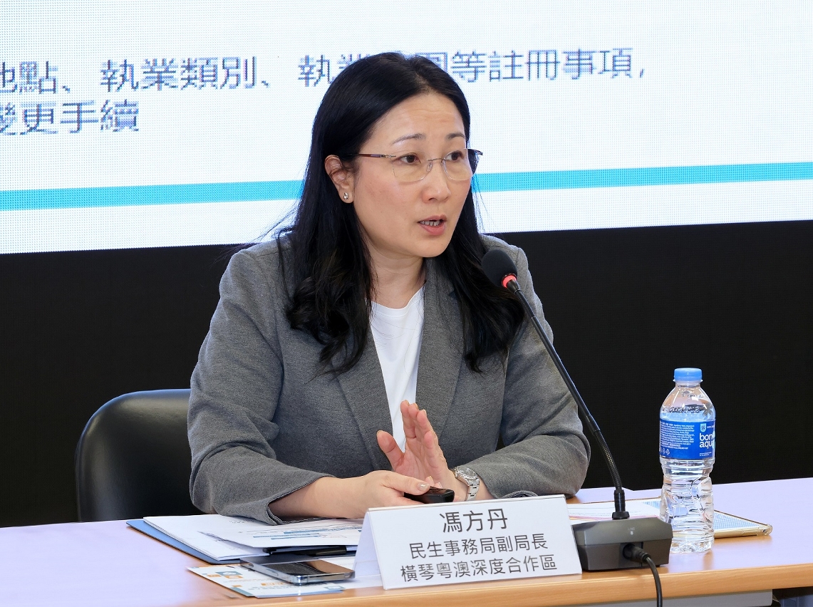深合區民生事務局馮方丹副局長從執業條件、註冊申請、創新亮點、規範須知、監督管理等方面介紹《醫療人員管理規定》內容及深合作區的醫療資源環境以及琴澳醫療培訓基地下一步課程計劃。她表示,為確保法規實施程序的規範化、透明化和科學化,深合區民生事務局將出台《澳門特別行政區醫療人員在橫琴粵澳深度合作區執業註冊管理辦法》,作為法規的配套規範性文件,目前正進行社會公開徵求意見階段,將於近期公佈並與法規同步實施。今年2月已獲得澳門持續專業發展活動(CPD)認可的琴澳醫療培訓基地,也將針對本澳醫療人員在深合區發展的實際需求,在內容設計、課程形式上持續優化課程及服務,為本澳醫療人員提供更好的成長平台,第2期培訓班計劃於7月開啓。
