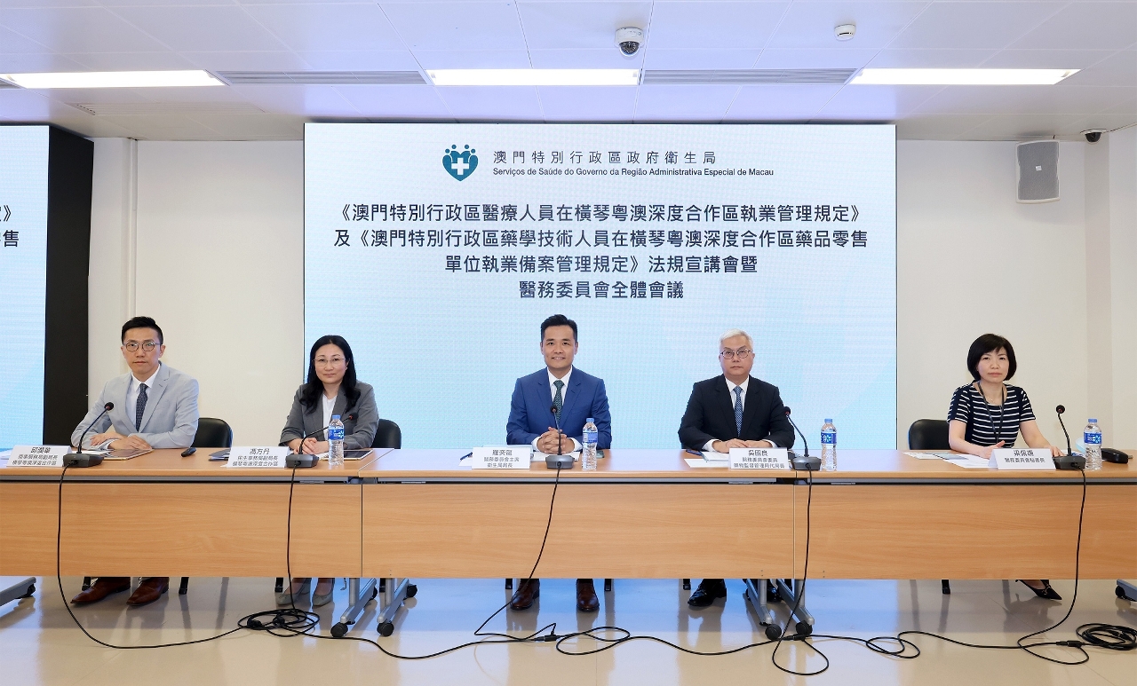 羅奕龍主席在會議上發言時表示,《醫療人員管理規定》和《藥學技術人員管理規定》經珠海市第10屆人民代表大會常務委員會第14次會議於今年5月26日審議通過,並將於8月1日起施行。《醫療人員管理規定》允許本澳15類醫療人員在澳門從事相關執業活動滿2年後,經註冊並取得執業證書便可在深合區範圍內提供醫療服務,無需再通過內地資格考試或短期行醫、短期執業制度申請。而《藥學技術人員管理規定》明確指出本澳藥學技術人員(包括本澳藥劑師、中藥師、中醫生和藥房技術助理等)依規可在深合區藥品零售單位提供藥學服務,當符合規定條件並經深合區藥品監督管理部門備案後,即可在深合區藥品零售單位直接提供藥學服務,無需參加內地相應考試。
