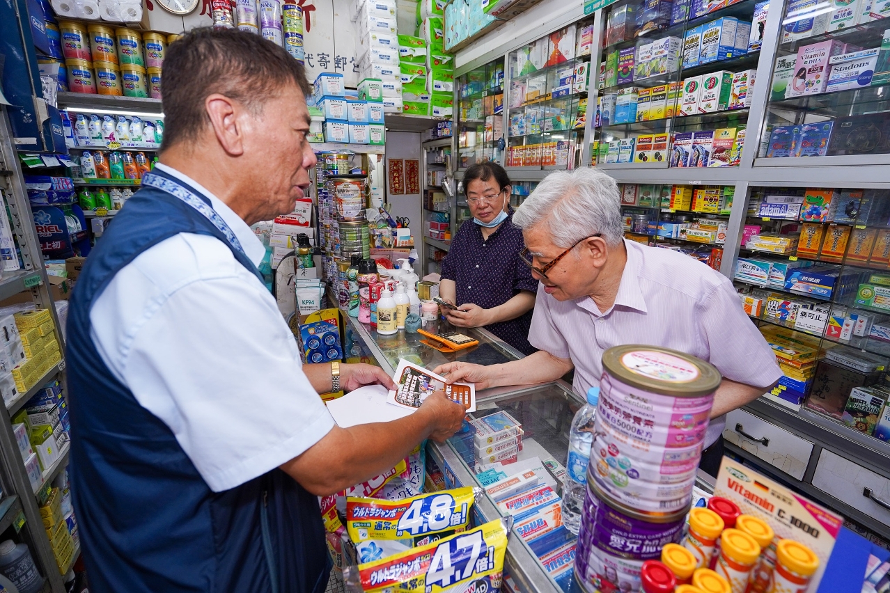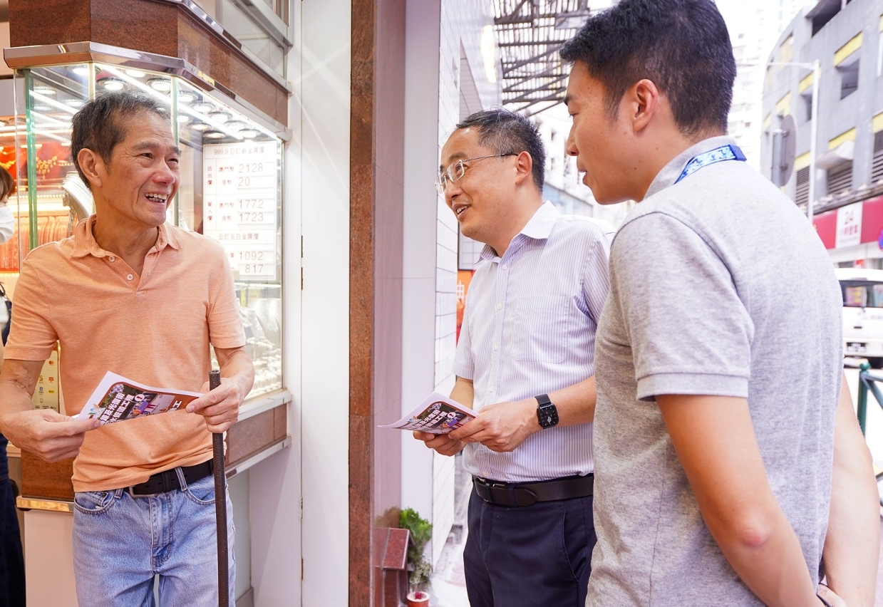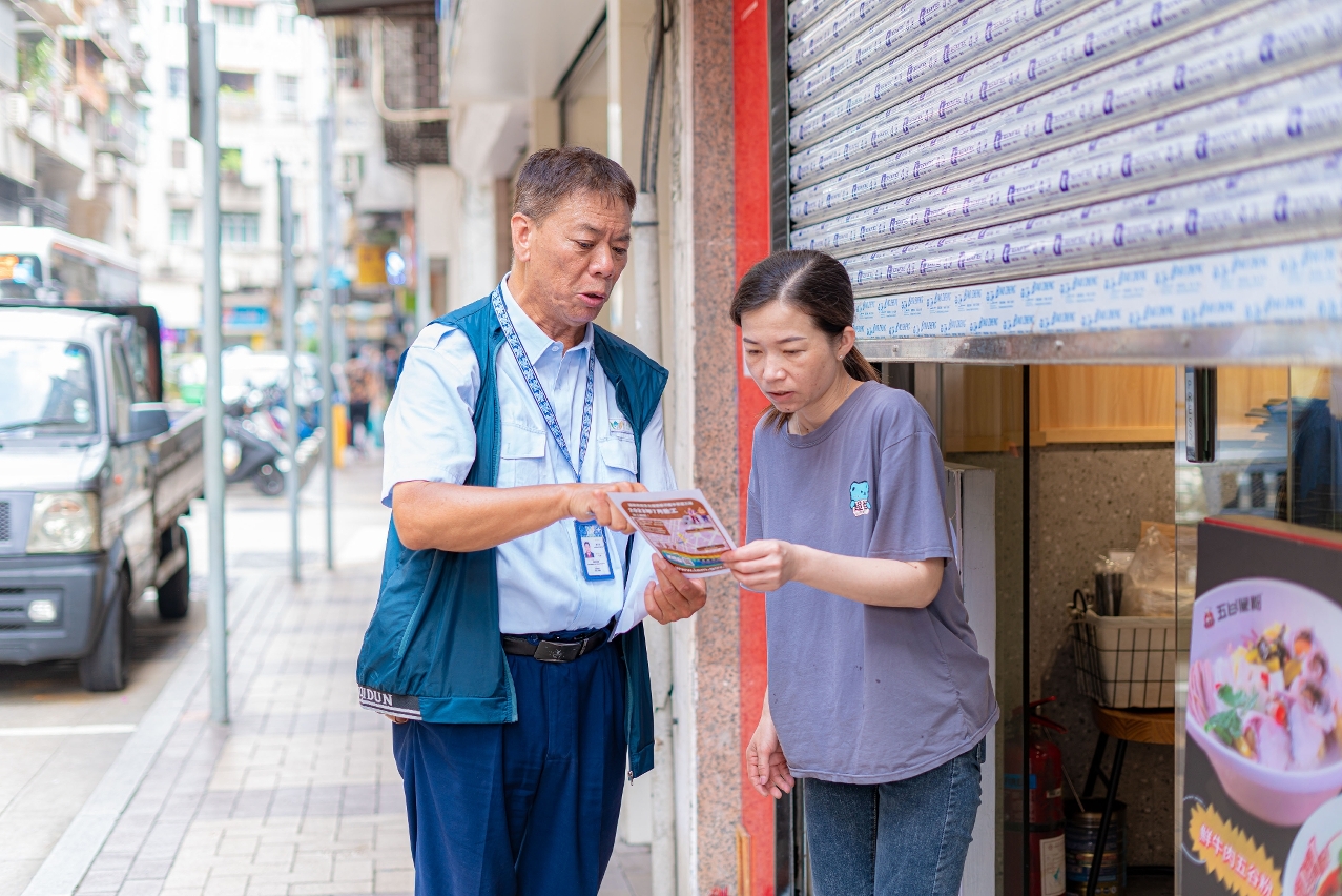市政署向新橋區商戶派宣傳單張介紹渠道工程