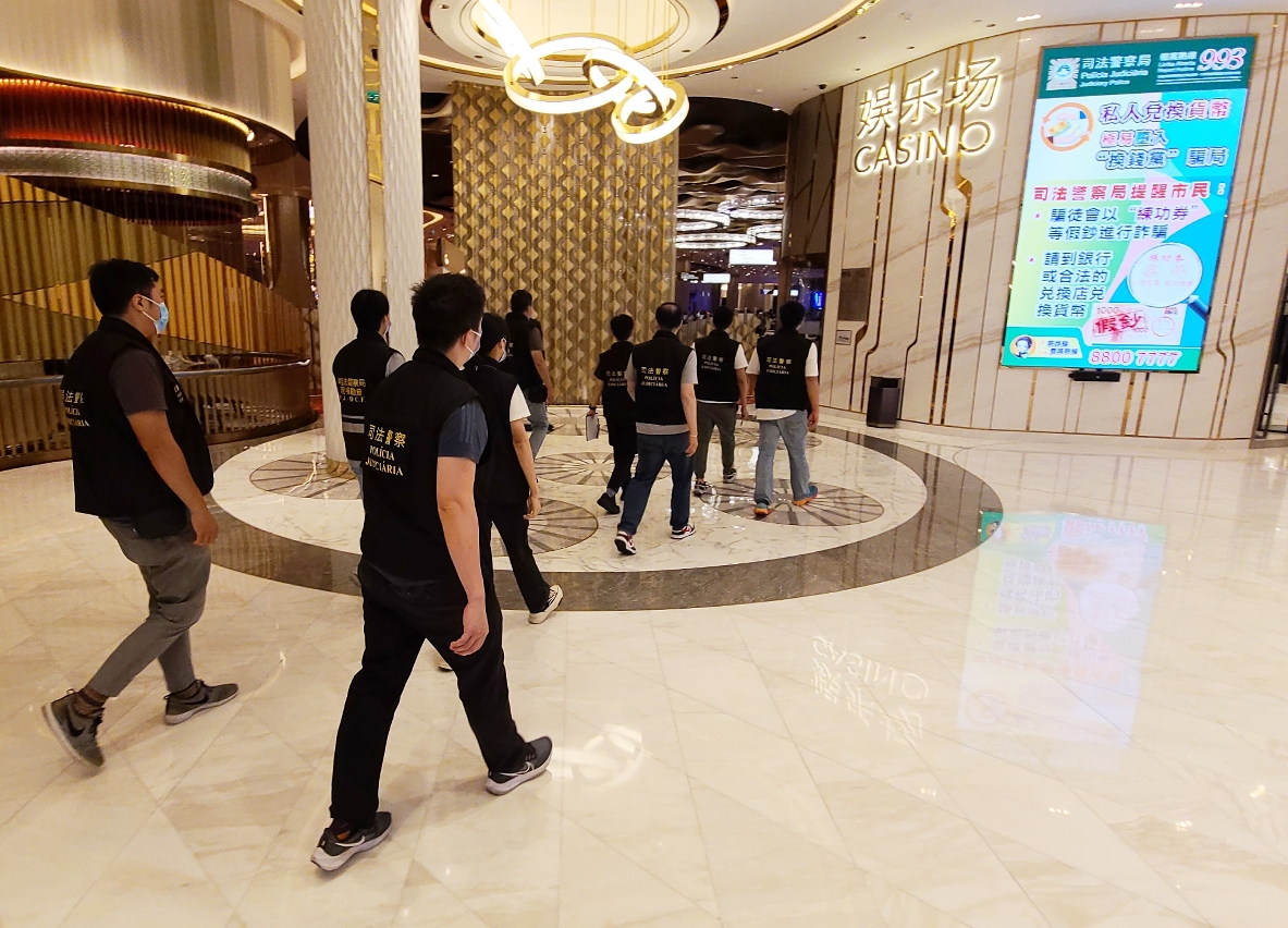 2023年7月7日晚上9時至翌日凌晨,司警局共派出 25名刑事偵查人員前往路氹區娛樂場進行巡查。行動中合共截查了124人(74男50女),當中發現6名內地男子從事非法兌換貨幣活動(即俗稱“換錢黨”),以及截獲1名逾期逗留的內地男子。上述7人被帶返司警局進行身份識別程序及調查後並未發現涉及其他犯罪,已將其悉數移送予治安警察局出入境管制廳處理。