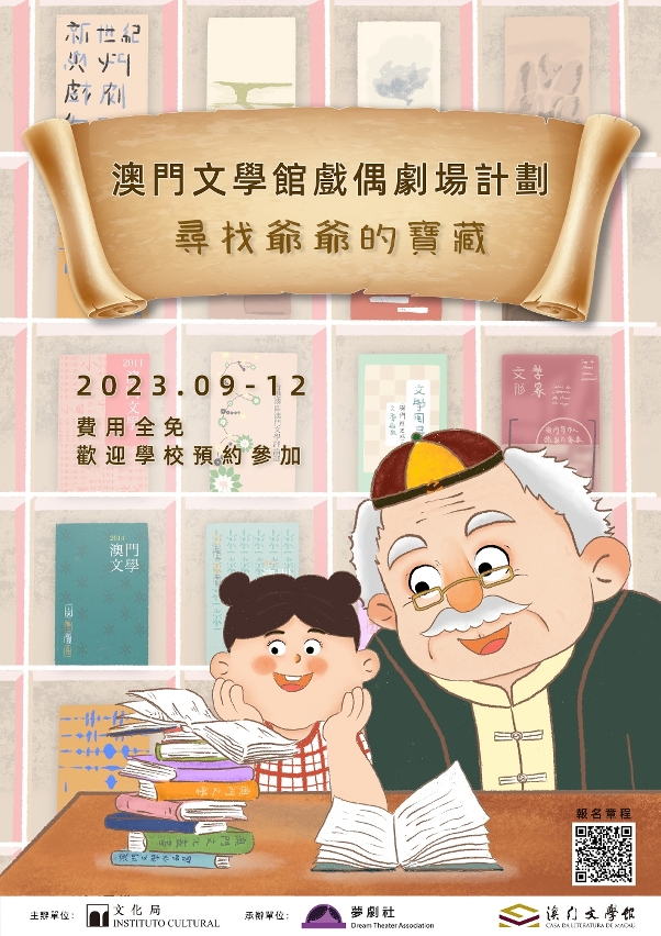 為加強學生對澳門文學的認識,瞭解與澳門有關的作家及認識其作品,文化局將於本年9月至12月期間在澳門文學館舉辦“戲偶劇場計劃——尋找爺爺的寶藏”,對象為本澳幼稚園及小學學生,費用全免,現已開始接受報名,歡迎各學校踴躍參與。