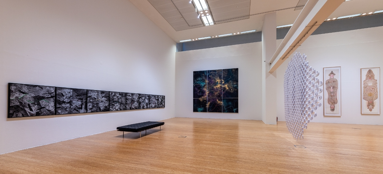 設於澳門藝術博物館一至三樓的主場展──“命運的統計學”,展出來自18個國家和地區的42位藝術家的118件(套)作品,包括繪畫、版畫、攝影、混合材料、雕塑、裝置、影像以及人工智能等。部分作品試圖在科技主導的世界中,重新探索心靈與精神的力量;部分則在傳統神話、宗教、巫術、療癒術等精神實踐中,發現科學和技術的端倪;而更多的藝術家在兩者之間的廣闊譜系中遊移,交替地雜糅不同的信念與方法。主場展展期至10月28日。