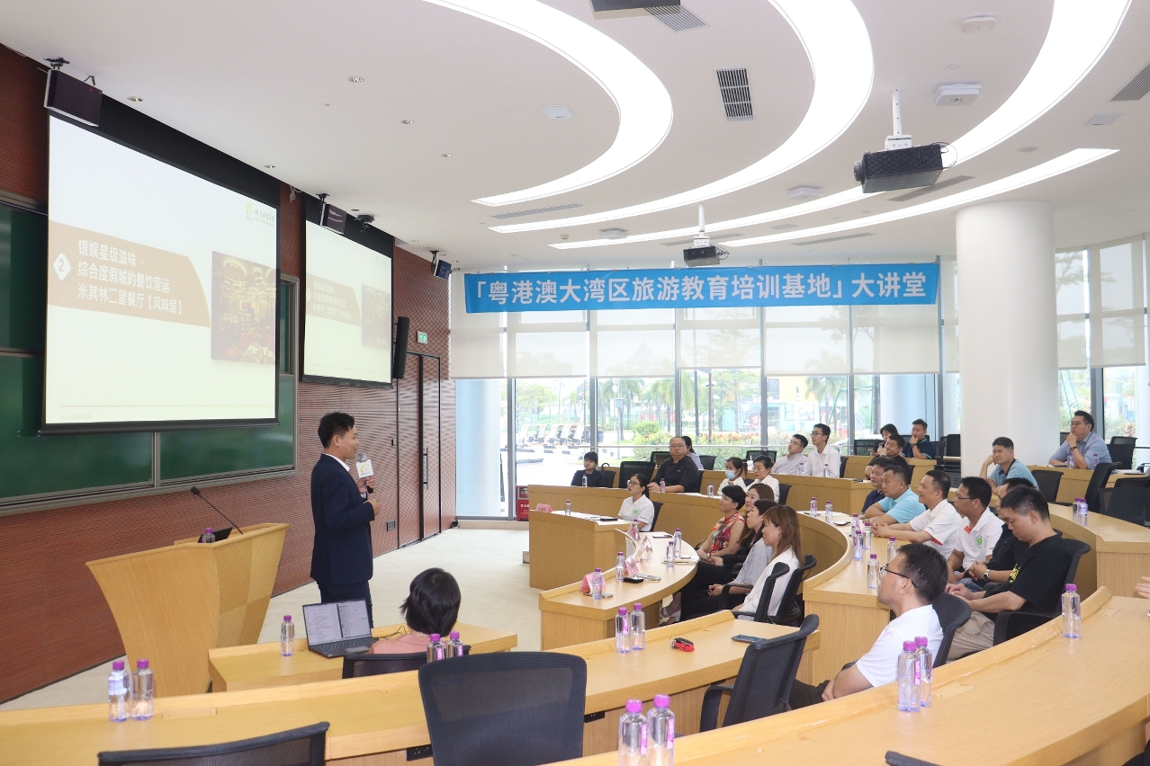 7月18日,“粵港澳大灣區旅遊教育培訓基地”大講堂在澳門旅遊學院橫琴培訓基地(下稱“橫琴基地”)以全新的面貌向業界呈現。澳門旅遊學院、澳門旅遊學院橫琴培訓基地運營方 — 珠海大橫琴泛旅遊發展有限公司、珠海市廚師協會的相關領導以及40多位來自珠海餐飲名廚、高職院校教師參加本次活動。