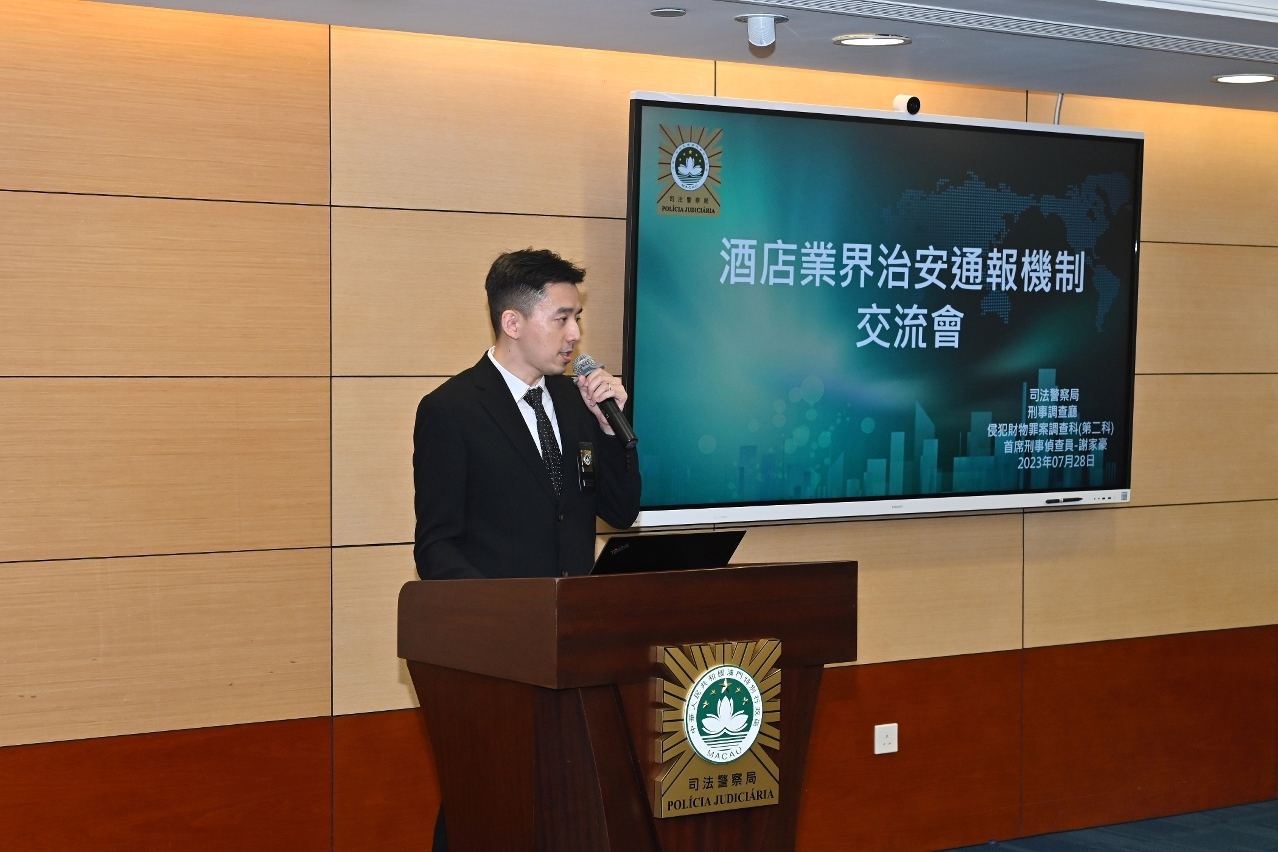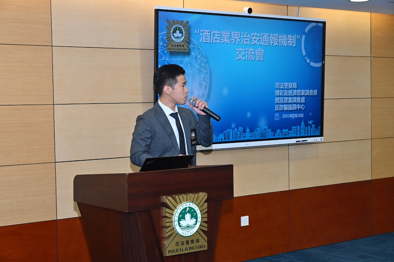 會議於7月28日下午3時在司警局總部大樓舉行,司警局副局長蘇兆強、刑事調查廳廳長薛專耀及多個刑事偵查部門主管出席會議,與來自71間本澳酒店的業界代表進行交流。