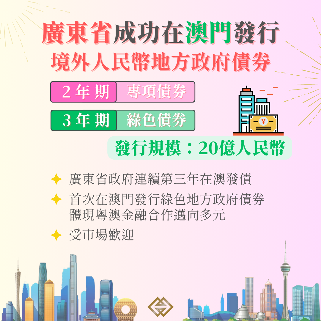 廣東省成功在澳門發行20億境外人民幣地方政府債券
