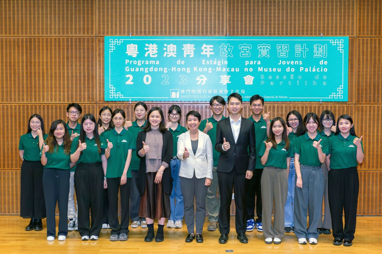“粵港澳青年故宮實習計劃2023”分享會於8月31日在澳門藝術博物館演講廳舉行,16名澳門青年在會上分享是次實習的收穫和感悟,他們早前在故宮博物院完成實習,通過深度的工作實踐和文化體驗,強化個人知識技能和團隊合作能力,增進對中華文化博大精深的認識。文化局局長梁惠敏、澳門藝術博物館館長袁紹珊、中華青年文化協會副會長施逸及實習生親友等出席。