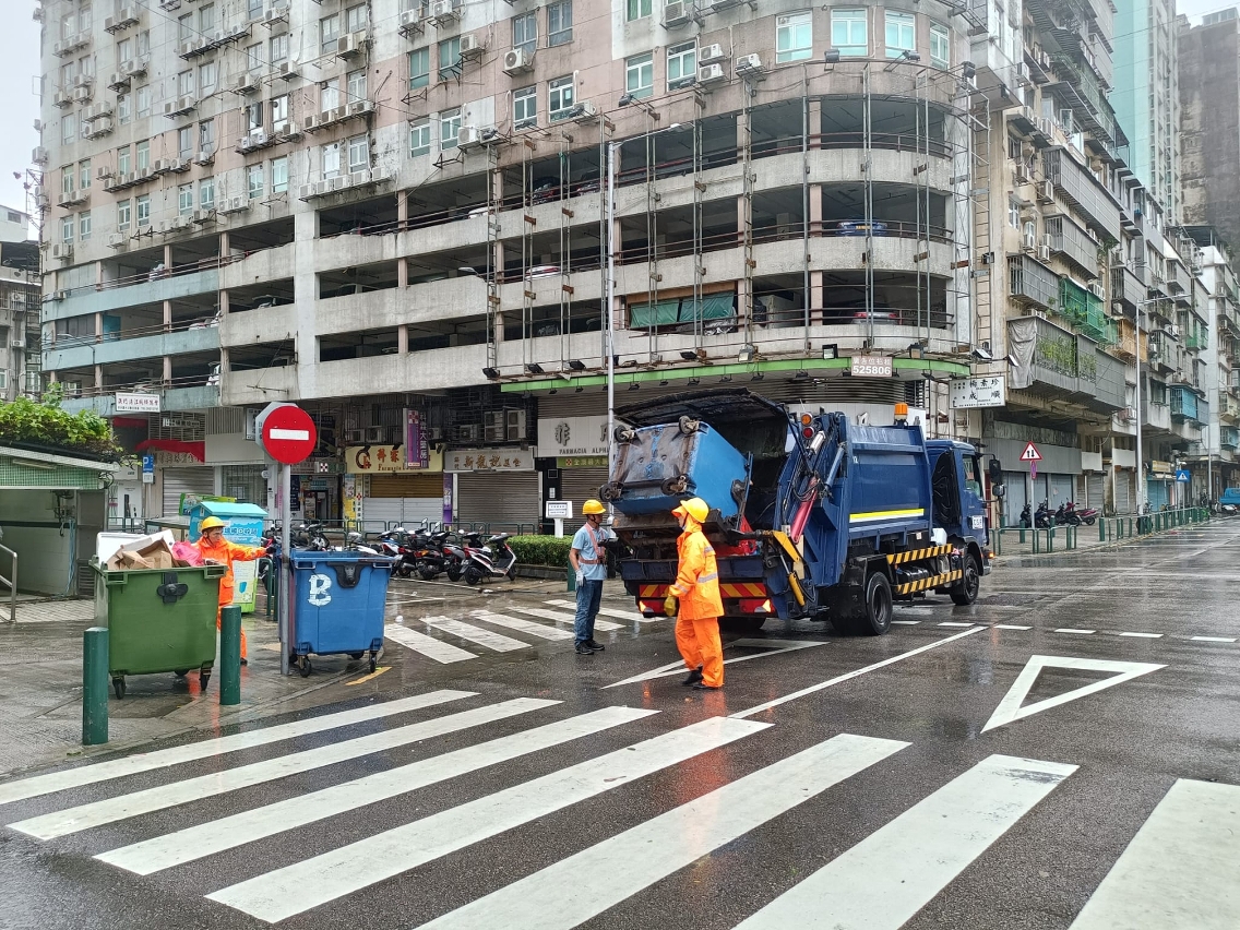 市政署呼籲市民於八號風球期間應暫時將垃圾貯存在家中,而高層大廈的管理實體亦應配合暫時把垃圾桶留置在大廈內,以免垃圾桶推放到街道上被颱風吹倒,加劇垃圾堆積及產生危險情況,應待八號風球除下後才棄置,讓清潔專營公司能有序地清運市面上的垃圾。