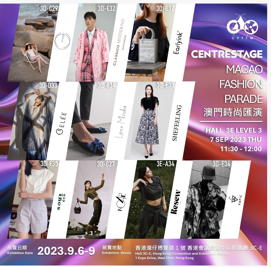 香港國際時尚匯展是亞太區內大型的時尚平台。十個澳門品牌將於9月7日上午11時30分假香港會議展覽中心會場舉行專場“澳門時尚匯演”,參加演出的品牌包括Alta Bella、CLÁSSICO MODERNO、Earlyink、GELÉE、Soul Eco、Lexx Moda、NO.42、RESEW HOUSE、SHEFEELING及VATIC。這些品牌都是通過香港專業評審團甄選,獲得參展資格。生產力中心期望透過是次參展,讓各品牌在國際時裝展會展示本澳的最新作品及設計水平,也藉此與世界各地的企業、買家聯繫交流、洽談業務,拓展更大商機。