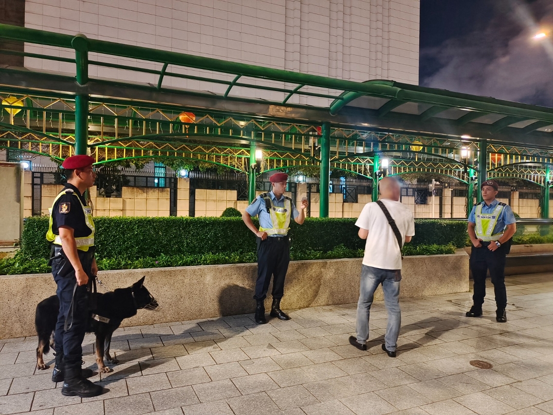 在警察總局統籌下,治安警察局於昨(12)日持續開展「雷霆2023」行動,以維護本澳社區良好治安環境。治安警察局轄下澳門警務廳、海島警務廳、情報廳、交通廳及特警隊聯同警犬組共派出95名人員,分別在澳門各區巡查多間按摩及足浴場所,亦在澳門北區、中區及路氹城金光大道一帶加強截查可疑人士,以及不定點進行查車行動,以預防及打擊各種不法行為和犯罪活動。