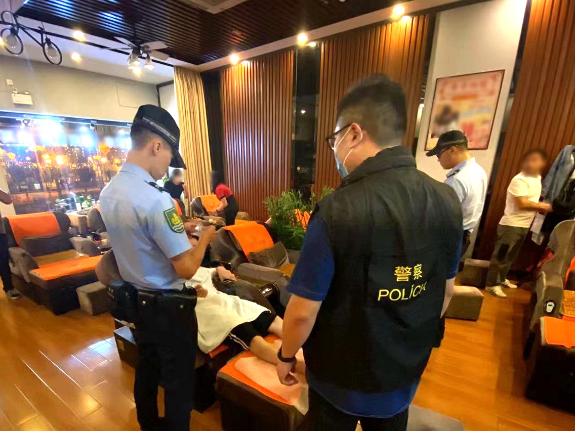 在警察總局統籌下,治安警察局於昨(20)日持續開展「雷霆2023」行動,以維護本澳社區良好治安環境。治安警察局轄下澳門警務廳、海島警務廳、交通廳、情報廳及特警隊聯同警犬組共派出76名人員,分別在澳門各區巡查多間遊戲機中心及按摩場所,亦在澳門中區、北區及路氹城金光大道一帶加強截查可疑人士,以及不定點進行查車行動,以預防及打擊各種不法行為和犯罪活動。