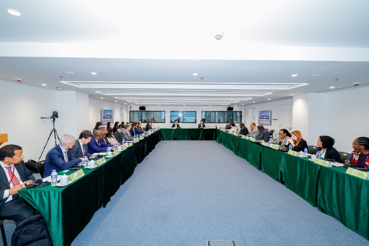 其後,葡語國家央行官員前往中葡論壇常設秘書處拜訪。秘書長季先峥及副秘書長黃偉麟向與會官員介紹了中葡論壇在促進內地及澳門與葡語國家之間的經貿合作重點工作;各央行官員並與葡語國家派駐代表進行了互動交流。