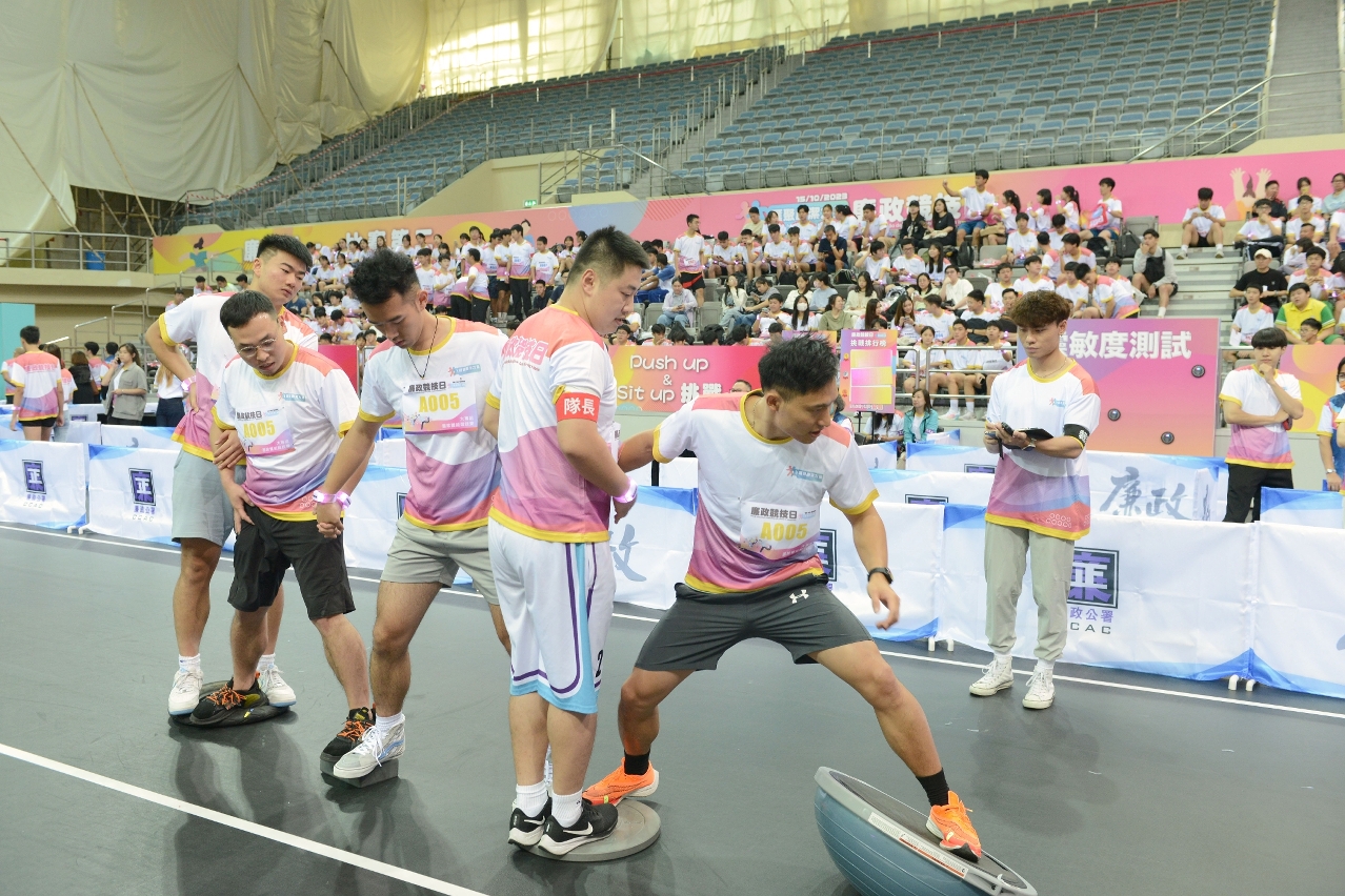 由廉政公署主辦,教育及青年發展局和體育局合辦的“匯聚廉潔力量─廉政競技日”於今天(15日)早上9時至下午1時假塔石體育館A館圓滿舉行。活動吸引近300名青年參加具廉政特色的團隊體能競技賽,另有逾200名市民入場體驗以“廉署調查員訓練及工作”為主題的周邊活動,場面熱鬧。