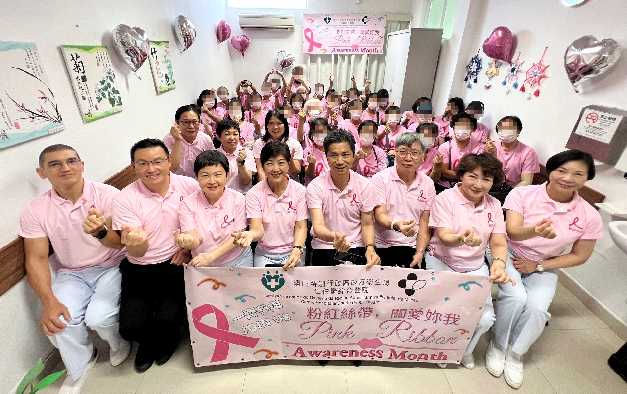 為響應“國際乳癌關注月”,日前衛生局仁伯爵綜合醫院邀請35名癌症患者進行“粉紅絲帶,關愛妳我”活動。醫院領導層與患者代表一起書寫祝福卡並掛在“祝福樹”上,祈求平安、順遂。當天還舉行了“乳腺癌篩查及治療方法”、“乳腺癌康復者的注意事項”等專題講座,以提升患者對乳腺癌的認知。