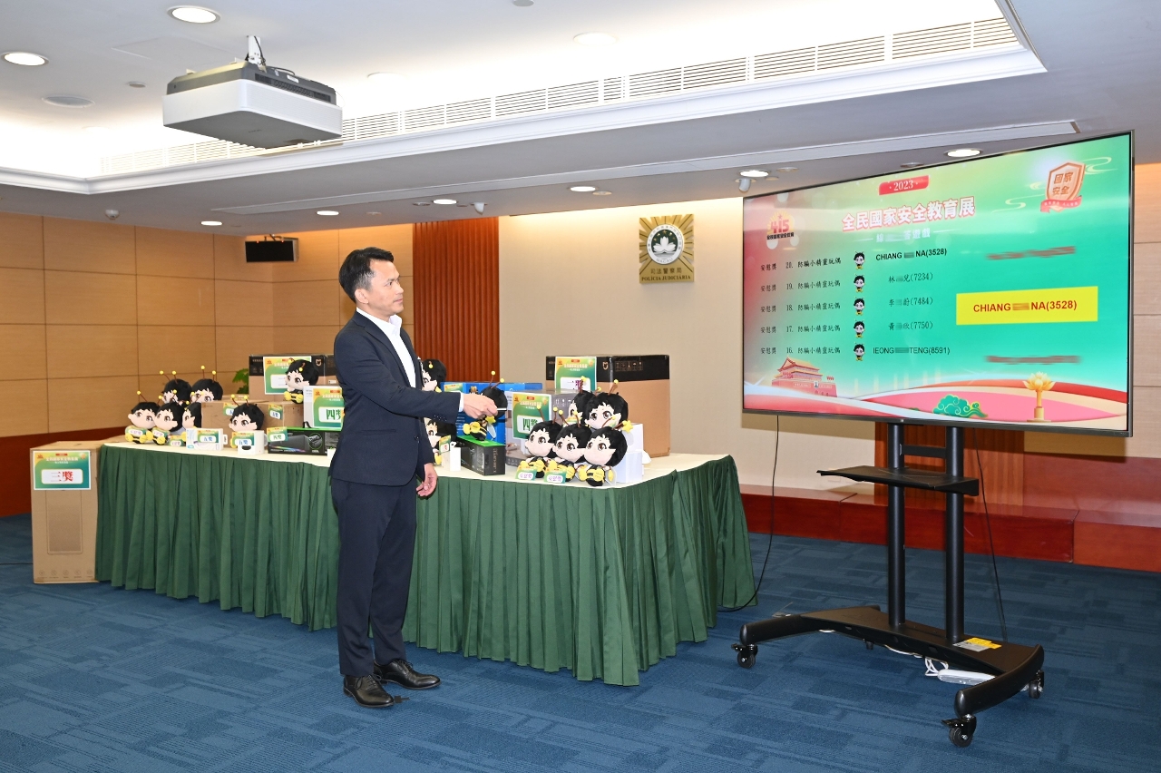 是次活動大眾反應踴躍,逾60,000人次參與,完成遊戲並填妥個人資料而獲抽獎資格者逾23,600人次。11月1日,司警局舉行抽奬儀式,經電腦隨機抽出2名頭獎、3名二獎、4名三獎、5名四獎、6名五獎及20名安慰獎合共40名得奬者,得獎名單已上載至“全民國家安全教育展”專題網頁(https://eesn.gov.mo)、司警局網頁(www.pj.gov.mo)及微信公眾號、“司警教室”Facebook專頁及“關注少年組”Facebook專頁,以供查閲,並由專人通知得獎者領獎事宜。如有查詢,可於辦公時間致電63301844。