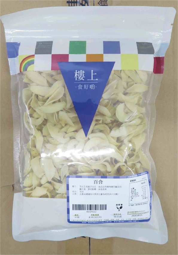 涉事預包裝產品為“百合”,品牌為“樓上”,淨重303克,涉事批次的此日期前最佳為2024年9月15日。該樣本被檢出鎘含量,經考慮乾製食物的因素後為百萬分之零點八零,超出本澳第23/2018號行政法規《食品中重金屬污染物最高限量》之規定。