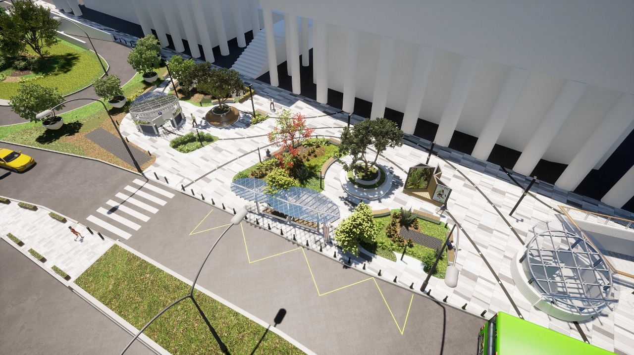 工程計劃分兩期進行,第一期工程面積約3,300平方米,由區華利前地巴士站至湖景豪庭廣場路段,更換廣場飾面、增加綠化及休憩設施、增設燈具並加強夜間照明以提升廣場整體氣氛;通往下層之圓形樓梯則增設玻璃雨篷,另外利用綠化帶分隔地庫排風口,改善出風口對路人之影響,同時調整斑馬線位置,擴大安全島等候空間,改變行人過馬路的動線,避免行人過路時途經排風口。