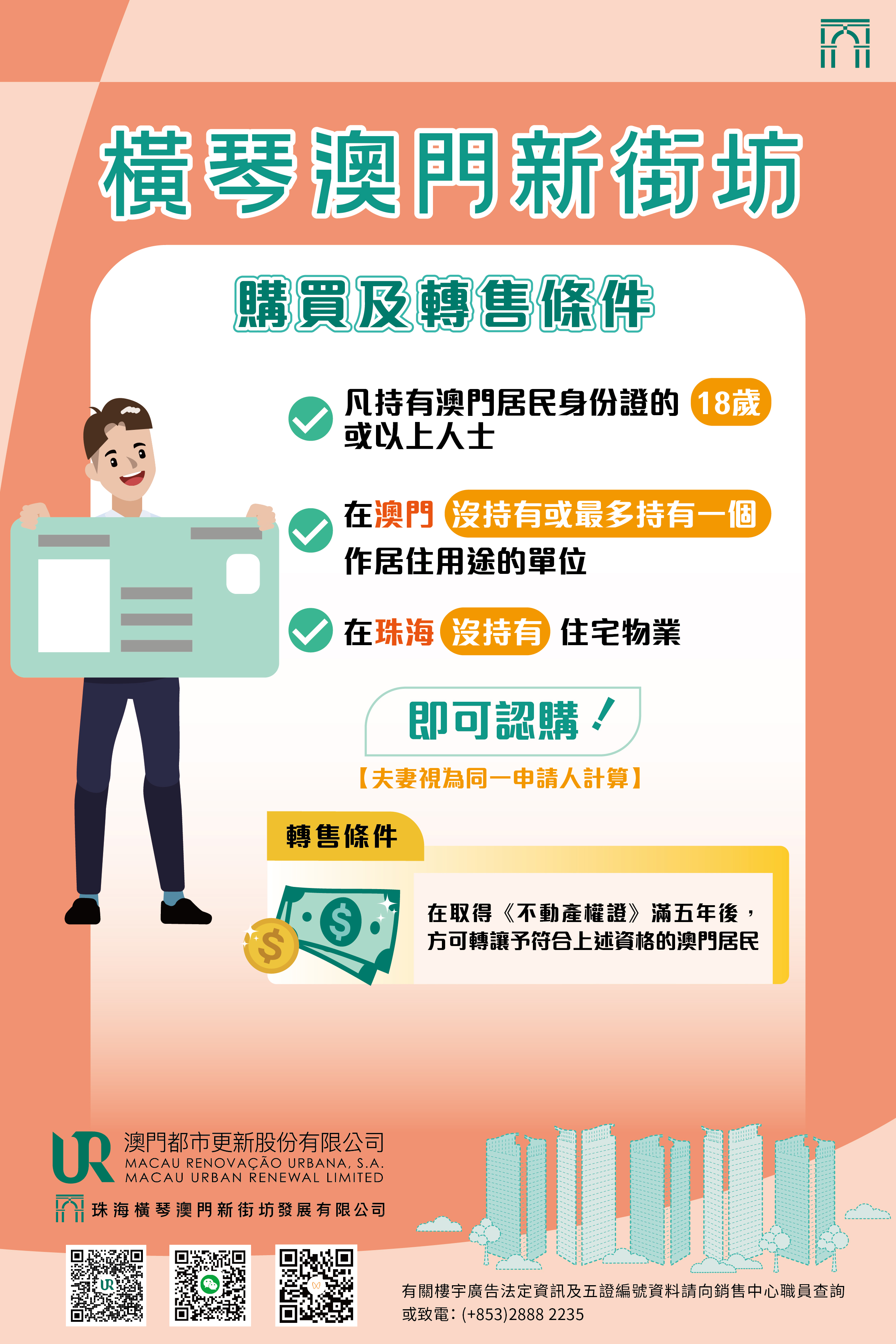 如欲了解詳情,可登入澳門新街坊專題網頁(https://mur.com.mo/mnnproperty)或電郵至mnn_property@mur.com.mo或致電(853)2888 2235了解橫琴「澳門新街坊」認購申請事宜。