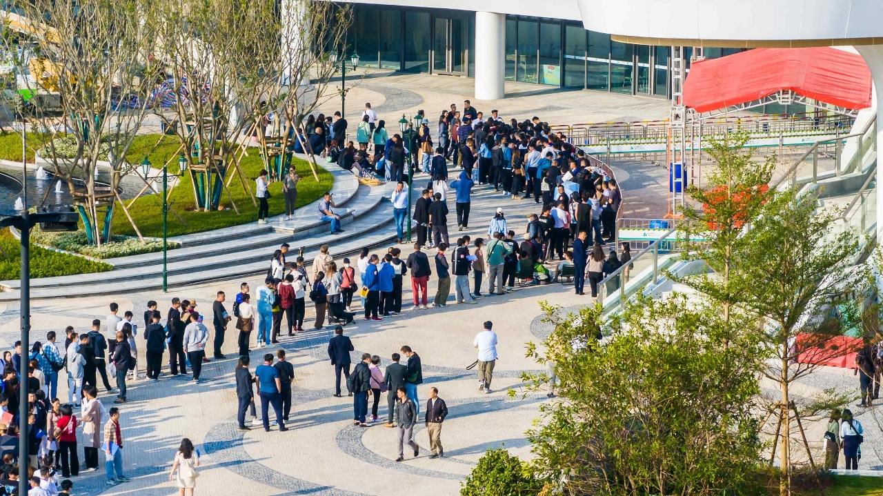 11月28日上午九時開放線上及線下申請,於開放申請前橫琴銷售中心已有不少澳門居民到場排隊,期望在橫琴購置合適物業;申請區人流有序辦理手續,氣氛熱鬧,澳門都市更新股份有限公司會汲取首日經驗持續優化流程,感謝認購的澳門居民耐心等候及包容。