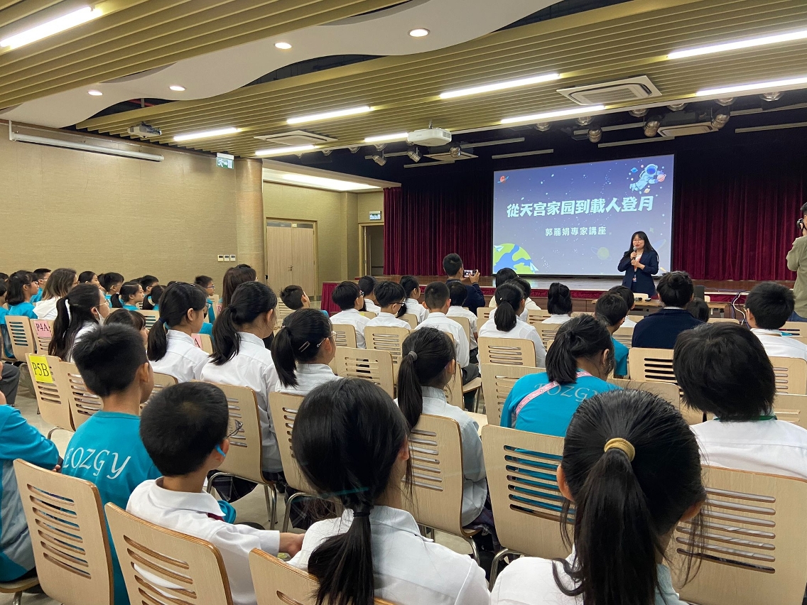 此外,為更好地擴大學習的受眾層面,在國家航天局支持及教青局的協調下,7 位科普專家於11月29日入校,為2所大學及6所中小學(包括澳門大學、澳門科技大學、鄭觀應公立學校、中葡職業技術學校、澳門中華總商會附設青洲中學、澳門坊眾學校、澳門鏡平學校、聖若瑟教區中學第五校)合共近3,000名學生進行了環繞中國航天發展的科普講座,包括“中國運載火箭技術創新和發展”、“仰望星空,北斗璀璨”、“中國運載火箭的發展與航天精神”和“從天宮家園到載人登月”。其中,“從天宮家園到載人登月”講座以分享繪本的形式進行,讓小學生能透過輕鬆易懂的方式認識航天知識和航天精神,有參與學生表示對中國空間站最感到好奇,透過講座讓他了解中國空間站“家的構成”情況和技術,以及航天員在太空生活的小細節;參與老師則認為講座以仔細和形象化的繪本圖像形式進行,能讓學生輕鬆有趣地學習科普知識。