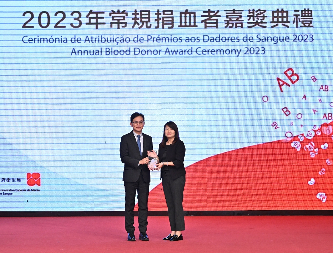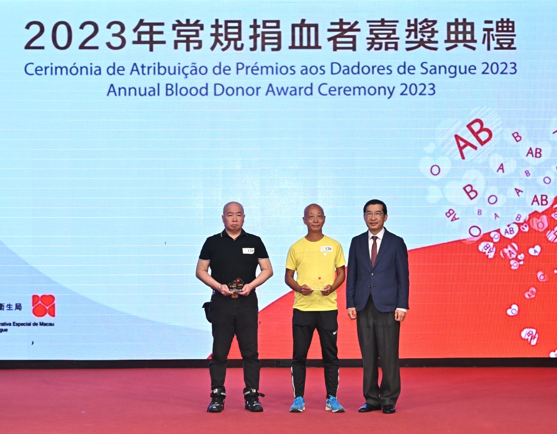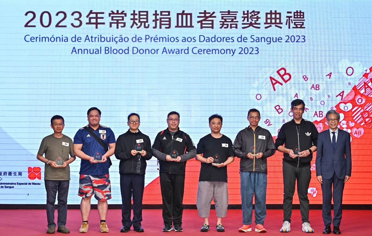 “2023年常規捐血者嘉獎典禮”於日前圓滿舉行,衛生局羅奕龍局長、解放軍駐澳門部隊保障部部長王永軍大校、中聯辦宣傳文化部王惠傑處長等出席了典禮並頒發了奬項。典禮公開表揚無私奉獻的捐血者和積極推動捐血活動的團體機構,以引起社會共同關注和鼓勵更多居民積極參與捐血行動。