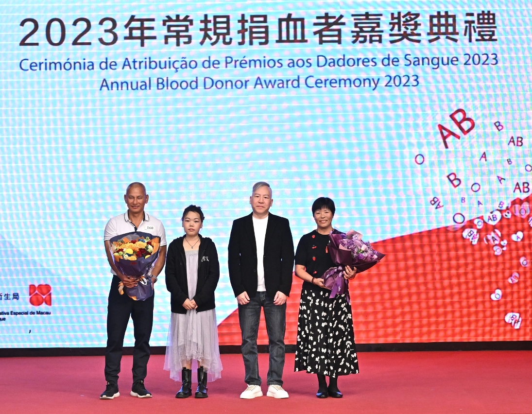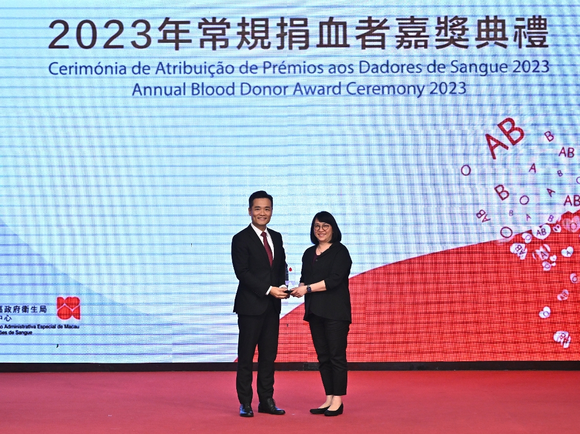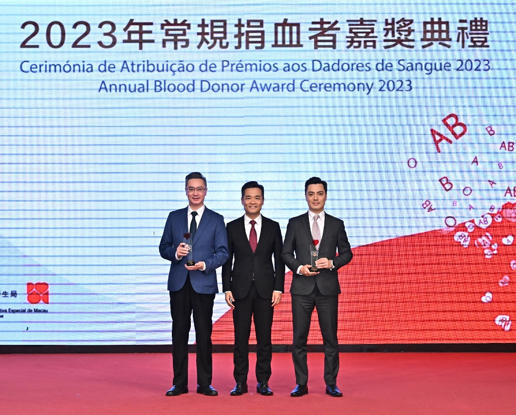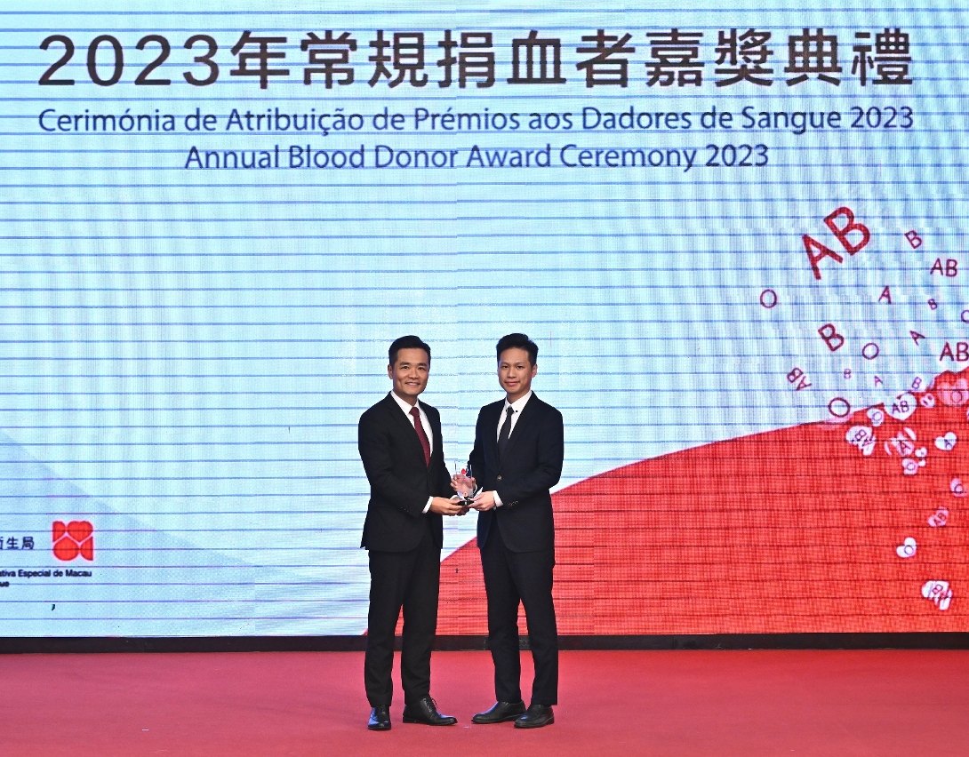 “2023年常規捐血者嘉獎典禮”於日前圓滿舉行,衛生局羅奕龍局長、解放軍駐澳門部隊保障部部長王永軍大校、中聯辦宣傳文化部王惠傑處長等出席了典禮並頒發了奬項。典禮公開表揚無私奉獻的捐血者和積極推動捐血活動的團體機構,以引起社會共同關注和鼓勵更多居民積極參與捐血行動。