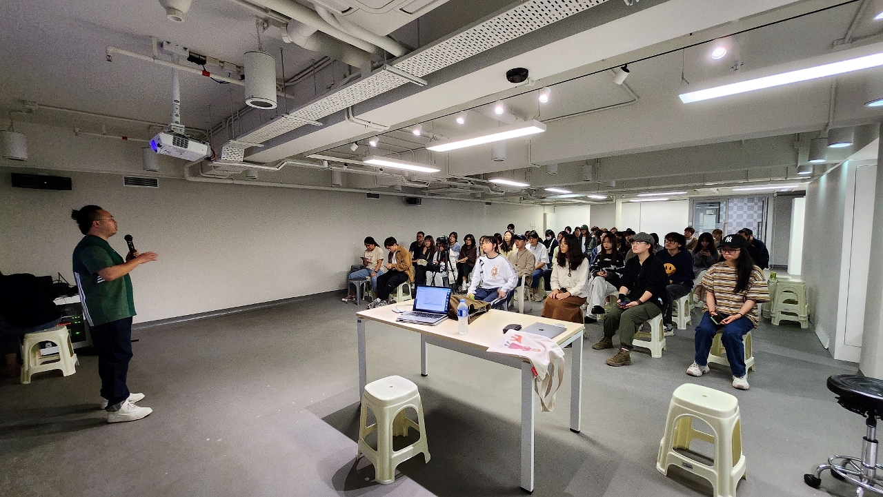 社會藝術實踐項目策展人宋軼主講「赤腳策展」講座,介紹在藝術機構及媒體的工作經驗豐富了策展視角和理論儲備。近年他致力於推動大灣區藝術家、特別是穗澳藝術家之間的交流。