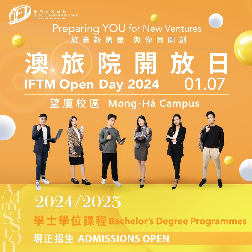 如欲查詢詳情,歡迎致電8598 3023或8598 1559與學院公關範疇聯繫,亦可掃碼關注“澳旅院IFTM”微信號,以及留意澳旅院Facebook和Instagram等社交平台。