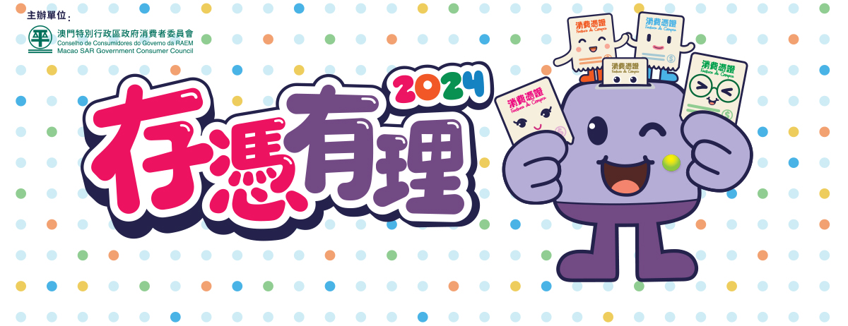為加強消費者保留消費收據的維權意識,消費者委員會持續舉辦“存憑有理”活動 ,“存憑有理2024”由2024年1月1 日至2024年12月31 日分四期進行,凡於全期活動結束前年滿三歲的澳門居民均具資格參加。