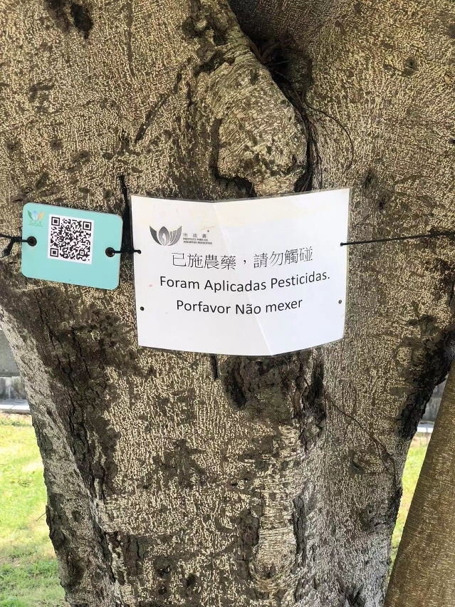 市政署持續巡查及護理各區街道樹木,以維護樹木健康及公眾安全。近月樹木管護人員在恆常巡查時發現,筷子基北灣、關閘馬路、騎士馬路一帶的榕樹出現季節性蟲害,經鑑定為近年於鄰埠肆虐的朱紅毛斑蛾幼蟲,故已採取防治措施,以抑制蟲害擴散。