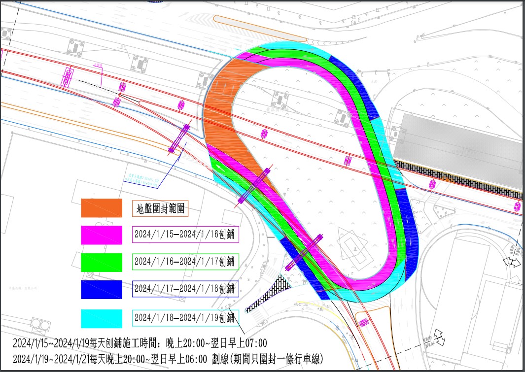 氹仔北安圓形地於2024年1月15日至1月21日每天晚上八時至翌日早上七時展開路面重鋪工作,屆時北安圓形地行車道將按需要分階段實施有限度通車(詳見附圖),敬請駕駛者遵守路上所設置之臨時交通標誌、服從交通警員之指揮及諒解是次改動所造成之不便。