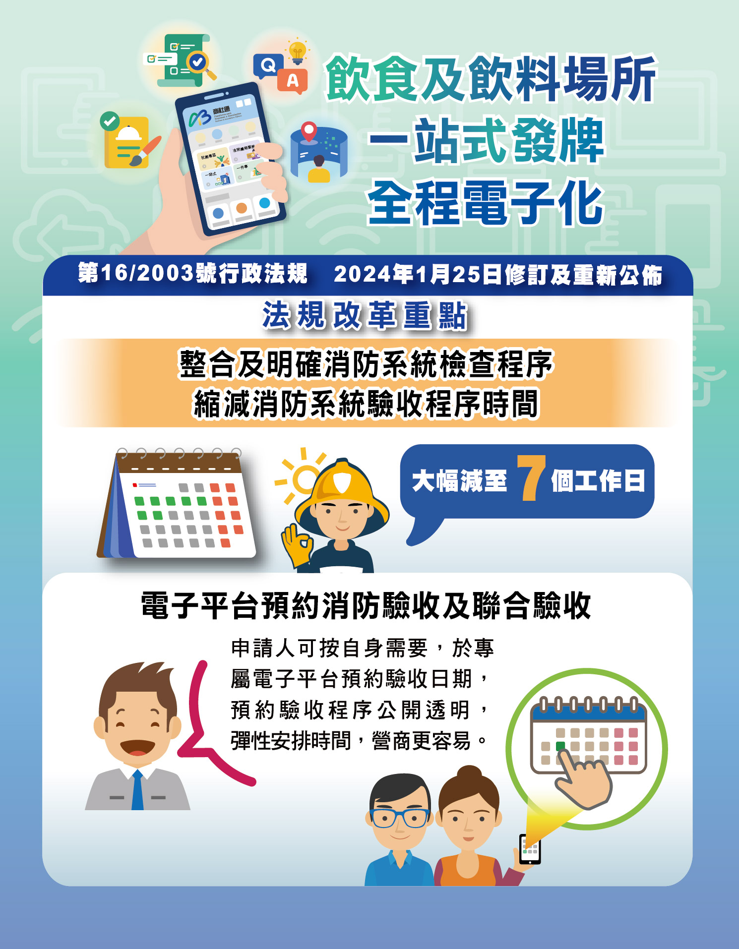 隨著特區政府電子政務的不斷發展,為進一步提升飲食及飲料場所一站式發牌制度的成效,回應業界反映“動工難、審批難、開業難”的訴求,創造更有利的營商環境,市政署對第16/2003號行政法規進行修訂。