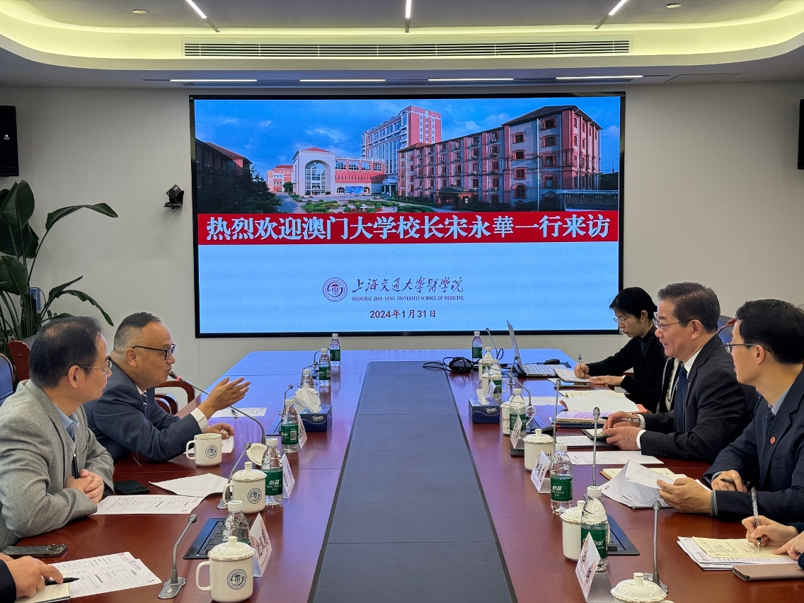 另外,宋永華與澳大副校長葛偉、健康科學學院副院長沈漢明等代表訪問上海交通大學,獲該校校長丁奎嶺、副校長徐學敏等熱情接待。宋永華表示,兩校自2012年起開展學生交流互訪,近年學術科研合作不斷拓展,期望未來兩校在“C9+3+1”的框架下繼續深化交流,攜手向建設中國特色世界一流大學的目標共同邁進。澳大代表團還參訪了上海交通大學醫學院,與該校副校長、醫學院院長范先群等代表就拓展兩校醫學領域合作進行深入的座談交流。