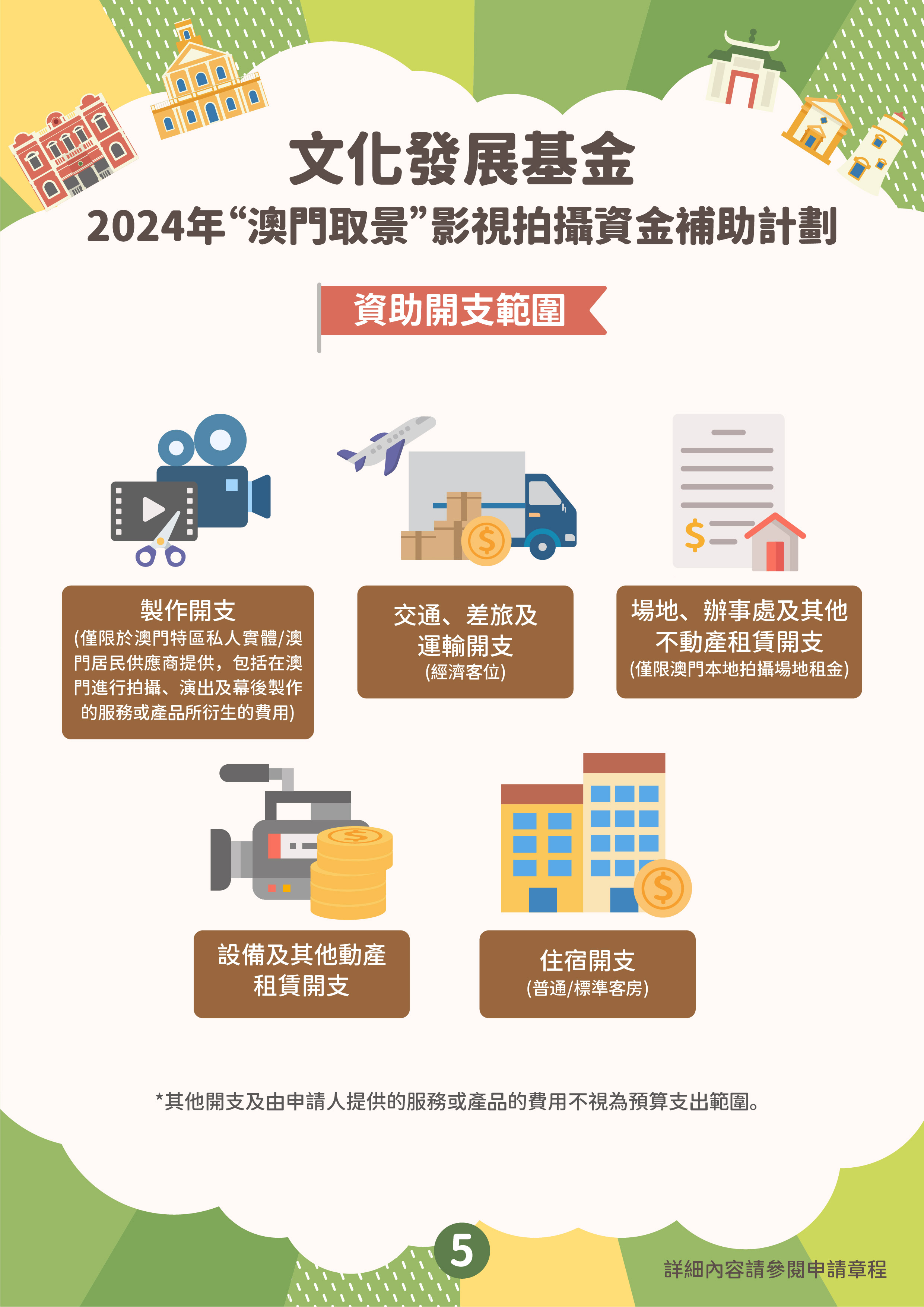 文化發展基金推出“澳門元素”影視宣發資金補助計劃、“澳門取景”影視拍攝資金補助計劃,支持具澳門元素影視作品投入市場,加強宣傳澳門城市形象及提升國際知名度,帶動文創及旅遊的聯動性,推動澳門影視產業發展。