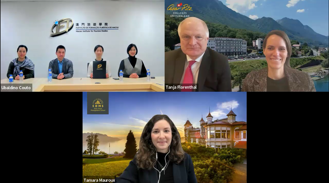 澳旅院與瑞士教育集團在“3+1雙學士學位”計劃的成功基礎上深化合作,近日簽訂補充協議,共同推出“4+1碩士直通車”計劃。集團旗下三所知名高等院校參與計劃,包括瑞士酒店管理大學(Swiss Hotel Management School)、瑞士愷撒里茲大學(César Ritz Colleges Switzerland)、瑞士美食藝術管理大學(Culinary Arts Academy Switzerland),分別位列QS 2023世界大學“款待及休閒管理”學科排名全球第3、6及8位。