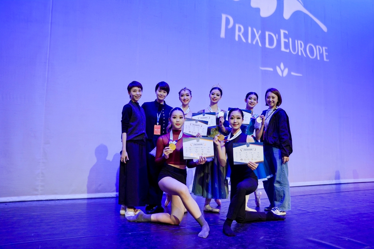 是次展演由2023-2024季成都、武漢、北京、上海、西安、珠海六大區域展演及線上選拔展演中成功晉級的優秀選手同台競技。表演藝術班初二級學生柯靖琳憑作品《觸碰不到的地方》獲“現代舞專業組”金獎;舞蹈表演藝術課程高二學生柯銘悅憑作品《輕重之間》獲“現代舞專業組”金獎;仇芯柔憑《睡美人》紫丁香變奏獲“芭蕾舞專業組”金獎;傅梓盈憑《Flames of Paris》女變奏獲“芭蕾舞專業組”銀獎;楊嘉欣憑《天鵝湖》一幕女變奏獲“芭蕾舞專業組”銀獎。舞校三位指導老師楊敏健、何軍妮及伍嘉敏亦分別獲得《優秀指導老師》稱號。PRIX D'EUROPE國際舞蹈大賽是歐洲國際藝術大獎賽的重要組成部分,賽事具權威性、專業性強,比賽代表了中國頂級的舞蹈水準。大賽評判匯聚中歐知名院校的藝術領軍人物及明星藝術家,為培養國際複合型人才提供了專業權威的藝術平台。