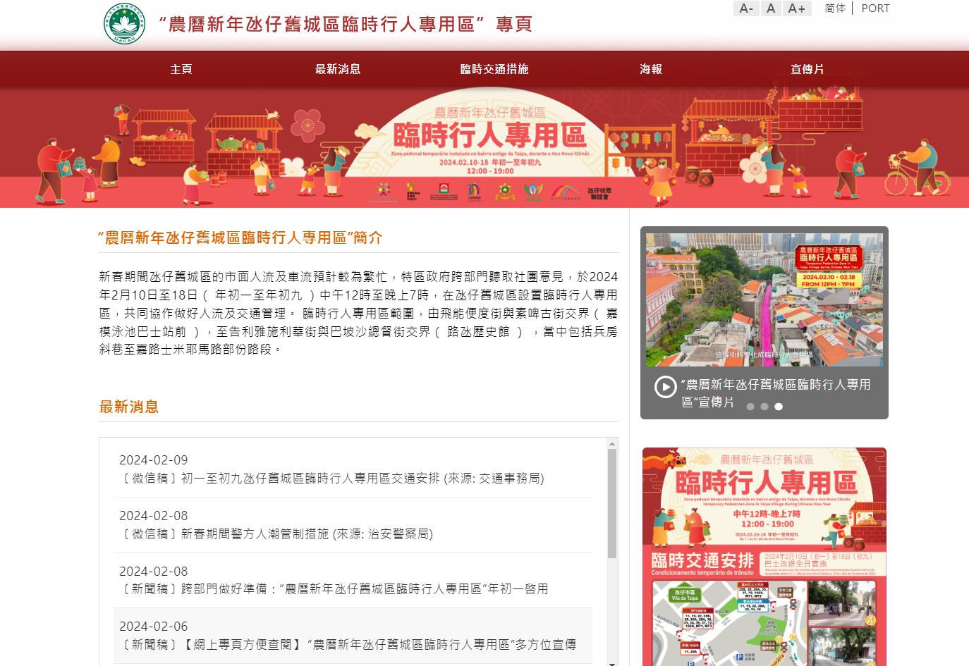 政府跨部門與氹仔舊城區的社團、商會及商戶,保持緊密溝通,共同落實好這項措施,確保農曆新年該區人流及交通有序通行,營造舒適安全的步行環境。
