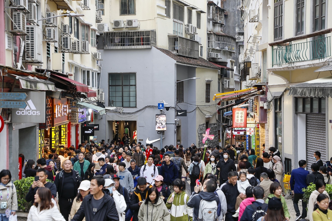 新春假期伊始,黃金周首三天(2月10日至12日)的日均旅客達16.7萬人次,其中年初三(2月12日)澳門入境旅客破21萬人次,超越自2023年單日入境人次創新高,亦是自有單日統計數據以來的第二高記錄。