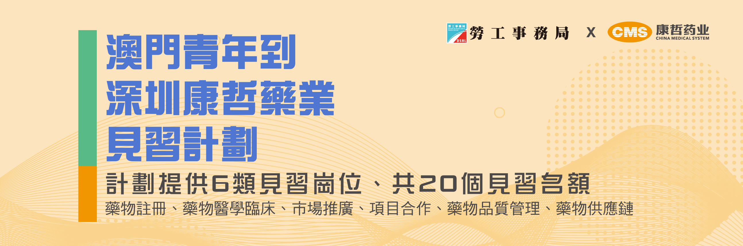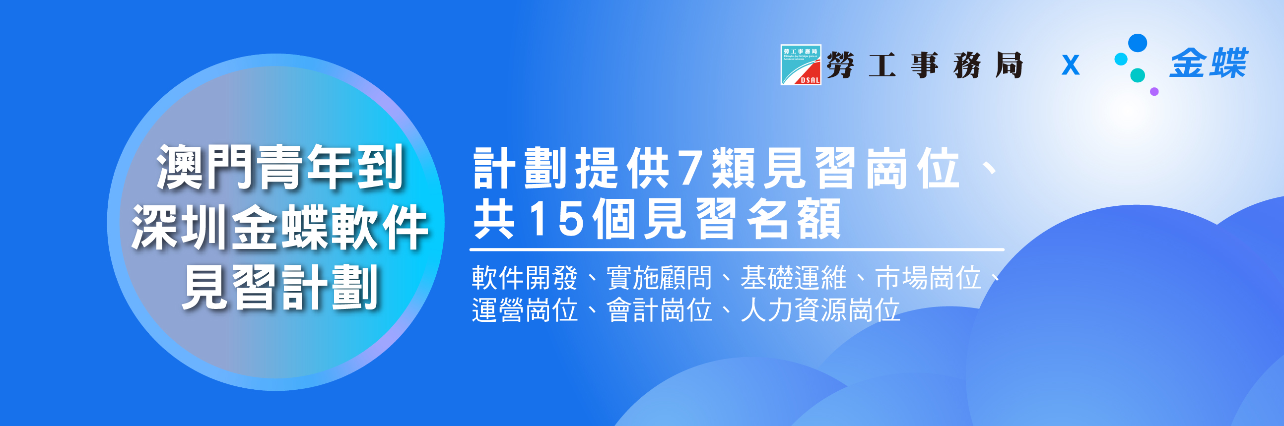 為配合特區政府積極推動“1+4”適度多元發展策略,優化產業結構而加快培養產業人才,勞工局與金蝶軟件(中國)有限公司(下稱“金蝶軟件”)及康哲藥業控股有限公司(下稱“康哲藥業”)合作,於2月19日分別推出“澳門青年到深圳金蝶軟件見習計劃”及“澳門青年到深圳康哲藥業見習計劃”,活動旨在讓澳門青年學習內地企業的先進經驗和科技知識,將所學應用到日後工作場景,拓展青年的就業發展空間。兩項見習計劃由2月19日至3月8日接受網上申請。