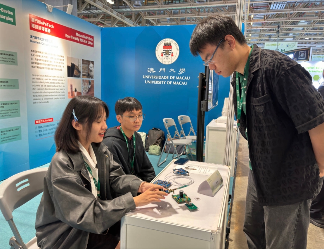 是次展出的澳大科研成果包括:一、澳大模擬與混合信號超大規模集成電路國家重點實驗室路延副教授研發的“電子設備間雙向充電的芯片設計”,該設計採用單顆可重構、高功率密度、小型化的雙向能量傳輸芯片,以實現設備間的高效率快充,方便用戶在緊急或者沒有主電源的情況下,實現電子設備之間的能量共享;二、科技學院黎永杰副教授研發的“多旋翼無人機在大氣垂直測量中的應用”,該應用通過使用多旋翼無人機搭載監測器,在粵港澳大灣區多個地點上空測量污染物,探究污染物的垂直分佈和環境影響,以理解污染物的來源、傳輸和擴散;三、澳大書院創業團隊研發的“澳門BioPeTech環保麥芽貓砂”,使用啤酒行業產生的麥芽渣作為植物纖維基底,研發出天然環保、健康品質的貓砂產品。