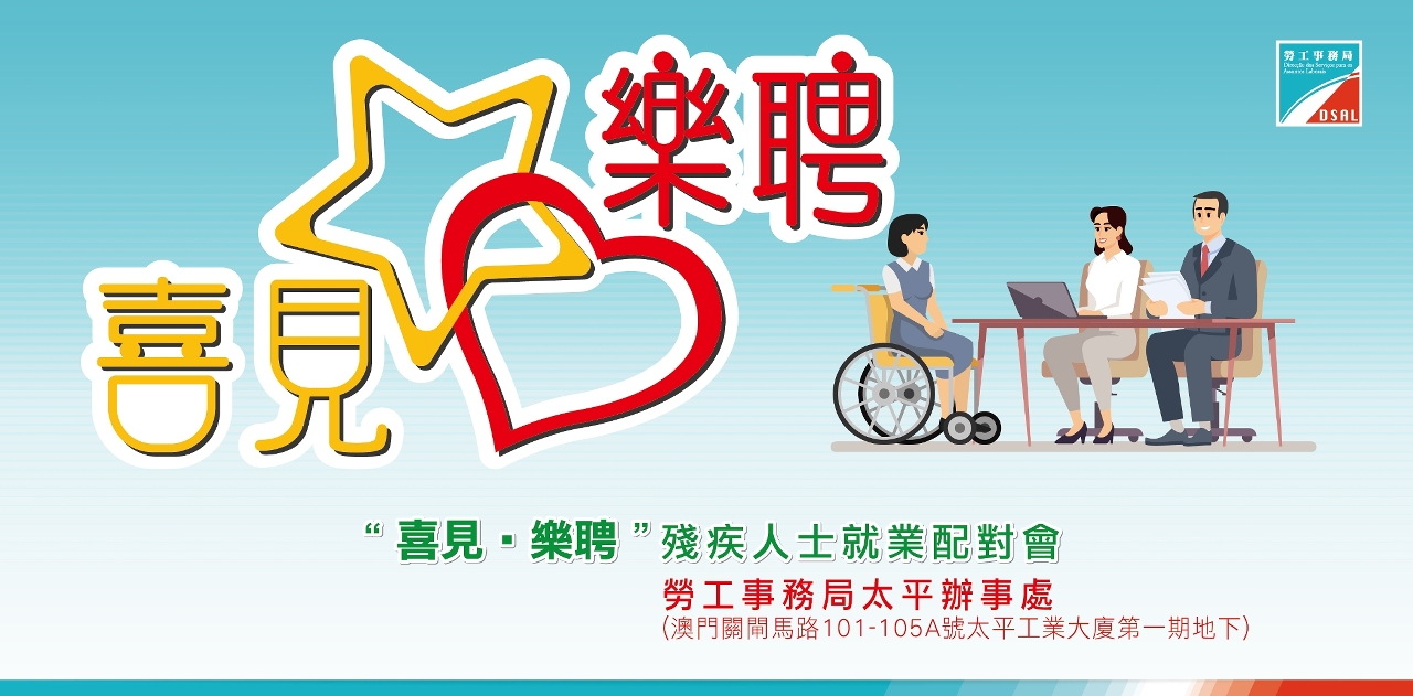 為推動僱主給予殘疾人士就業機會、鼓勵殘疾人士投入職場。勞工事務局將於本年6月5日在勞工局太平辦事處舉辦“喜見・樂聘”殘疾人士就業配對會。勞工局歡迎企業4月8日起踴躍報名參與,支持殘疾人士就業。