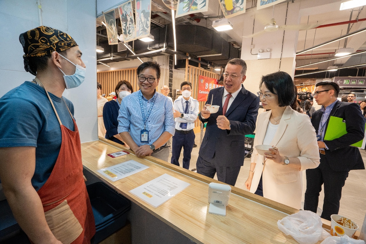 沙梨頭美食廣場開幕儀式今天早上十一時舉行,市政署市政管理委員會主席戴祖義,副主席羅志堅、柯嵐,市政諮詢委員會主席司徒民義、副主席鍾國榮,以及攤位承租人代表等任主禮嘉賓。一眾嘉賓於儀式後參觀美食廣場,與攤位承租人進行交流,並品嚐不同種類的美食。