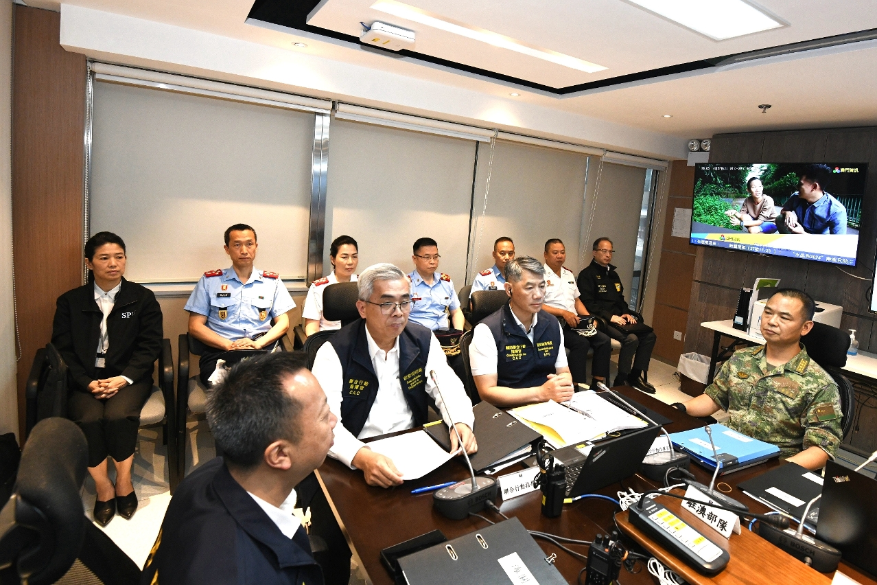 為持續强化社會大眾防災減災意識,提升本澳應對自然災害綜合聯動效能,民防架構於今(27)日舉行代號“水晶魚2024”年度颱風民防演習,演習由政府部門、社團及專業機構,以及市民共同參與,目的是透過年度民防演習,不斷提升社會各界與民防架構應對災害的默契和協同能力,喚起市民大眾對災害預防的重視,加強社區防災的韌性。演習由保安司司長、聯合行動指揮官黃少澤主持,警察總局局長梁文昌、澳門海關關長黃文忠,聯同各民防架構部門的領導或主管代表共同參與演習,亦邀請中國人民解放軍駐澳門部隊戴勁松副司令員出席。