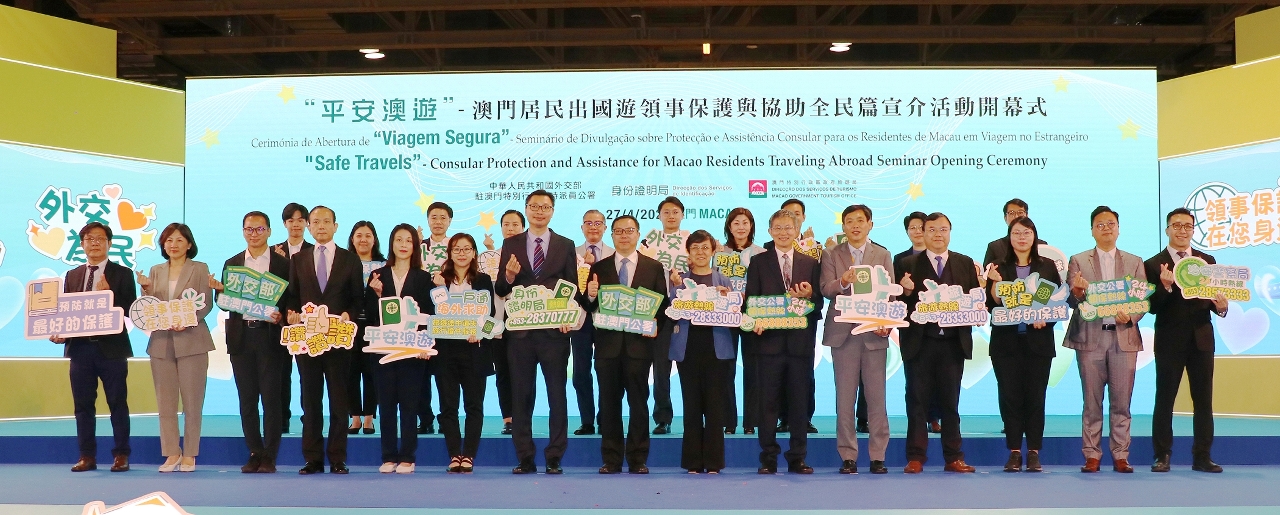 在外交公署的指導下,身份證明局每年均參展“旅博會”,積極向居民推廣領事保護,今年除了設置特色展位,更首次與外交公署及旅遊局合辦“平安澳遊”—澳門居民出國遊領事保護與協助全民篇宣介活動。外交公署副特派員孫向陽致辭時表示高度重視澳門同胞在海外旅行期間的各項安全,始終秉持“以人民為中心”的宗旨,積極踐行“外交為民”理念。身份證明局局長周偉迎及旅遊局局長文綺華均表示冀宣介活動讓居民加深認識領事保護,提前了解海外求助資訊,提高外遊安全意識。