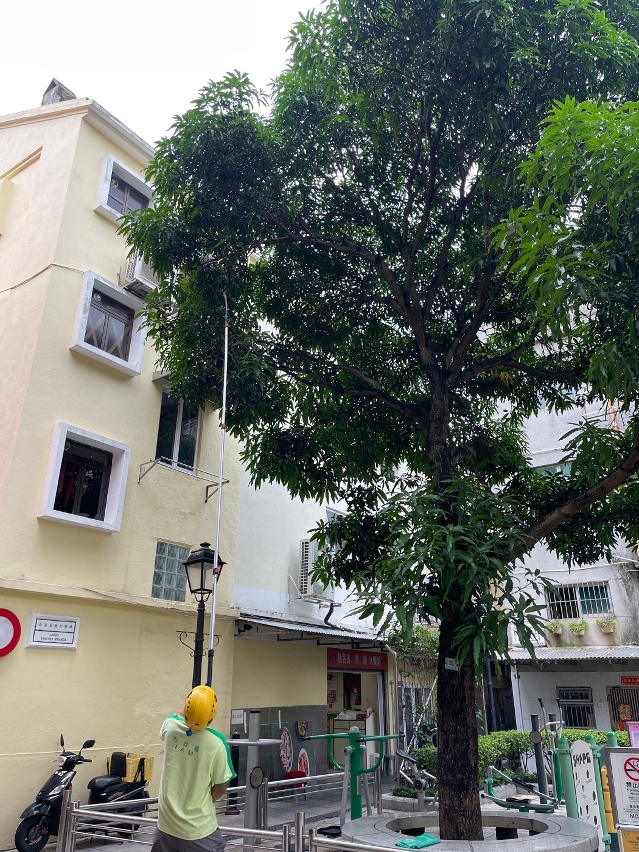 為應對風雨季來臨,樹木養護人員有序對枝條過密的樹木進行疏剪,除去病枝、枯枝和結構撕裂的樹枝等工作,以減輕樹冠重量及受風面積,降低樹木在暴風雨時倒塌的風險;同時,因應樹木的結構狀況,使用檢測儀器輔助,以檢查病危株空心及腐朽壞死程度,並結合人流、立地環境、樹木健康狀況、加固護理或施工安全等因素進行綜合評估,制訂養護方案,處理受病蟲害或生長不良樹木;持續跟進病樹的護理救治、調整及加固樹木支撐架,以及優化樹穴鋪面及懸掛樹牌。