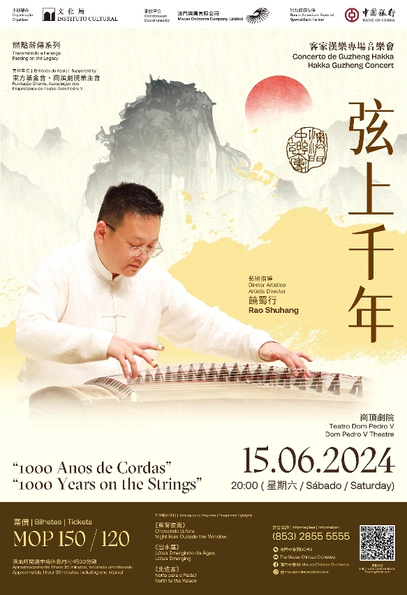 客家箏又稱廣東漢樂箏,至今已有千年歷史,因其豐富的表現力、音色古樸典雅,在廣東漢樂中有獨特地位,2019年被評為國家級非物質文化遺產。《弦上千年》客家漢樂專場音樂會,邀得古箏演奏家饒蜀行擔任藝術指導,並獨奏多首傳統客家箏曲,包括《出水蓮》《蕉窗夜雨》《崖山哀》等,邀請樂迷一同聆聽源遠流長的古箏之音。此外,澳門中樂團亦將聯同饒蜀行,演繹《過江龍》《北進宮》《西廂詞》《翡翠登潭》等傳統名曲。饒蜀行是廣東客家箏派傳人,出生於古箏世家,自小接受漢樂薰陶,多年來在內地及多國演奏,傳承漢樂經典,透過其精湛技藝,把漢樂推廣給更多聽眾,曾獲選為廣州星海音樂廳最受歡迎的音樂家之一。