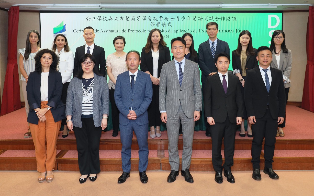 合作協議簽署儀式於2024年6月6日在教青局仲尼堂舉行。在教育及青年發展局局長龔志明和東方葡萄牙學會代表Ricardo Silva的見證下,三所公立學校校長與東方葡萄牙學會主席共同簽署合作協議書。合作協議內容包括設置及組織學生參加賈梅士青少年葡語測試,定期舉辦葡語教師專業培訓及葡語學術交流會等多項具體措施,提升教師的葡語教學效能及學生的葡語應用水平。
