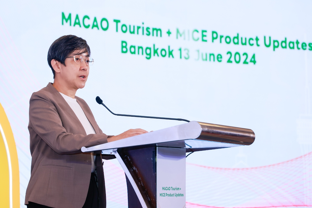 澳門“旅遊+會展”最新產品資訊推介會及洽談會今(13日)在曼谷盛泰瀾酒店會議中心 (Centara Grand & Bangkok Convention Centre at Central World)舉行。澳門旅遊局局長文綺華、泰國旅行社協會前副主席Somchai Chomraka、澳門貿易投資促進局行政管理委員會執行委員李藻森、澳門會展產業聯合商會副會長張敬文、泰國旅行社協會高級顧問Wachira Wichaiwatana、橫琴粵澳深度合作區經濟發展局文旅會展商貿處處長林衍傑和澳門旅遊局駐泰國代表處總經理Uracha Jaktaranon等嘉賓,聯同澳門國際機場專營股份有限公司代表、澳門六大綜合度假休閒企業代表、澳門和泰國業界等約150人出席活動。