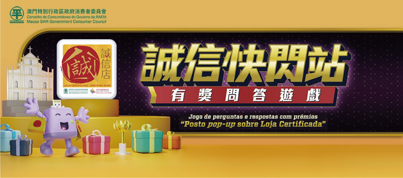 配合社區“誠信店”宣傳,為吸引市民關注,消委會舉辦“誠信快閃站”有獎問答遊戲,凡持有效的澳門居民身份證,且於遊戲結束前年滿12歲市民均具參加資格。